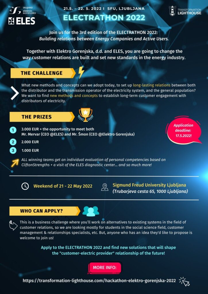 Electrathon – Elektro Gorenjska in Eles: 21. in 22.05.2022, v centru LJubljane, na univerzi Sigmunda Freuda